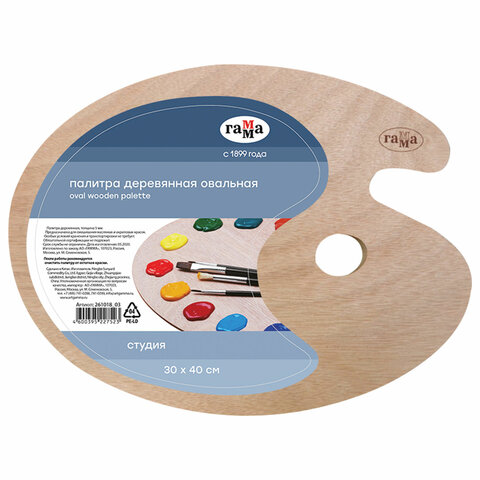 Палитра деревянная овальная Гамма "Студия", 20*30см, толщина 3мм