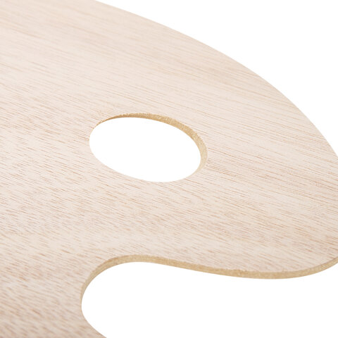 Прочная деревянная палитра с гладкой поверхностью подходит для смешивания масляных, акриловых и темперных красок, устойчива к воздействию разбавителей и растворителей. Палитру овальной формы удобно держать в руке.