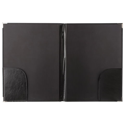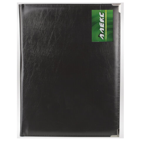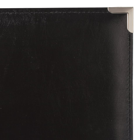 Адресная папка выполнена из качественного кожзаменителя и прошита по краям. Для повышения прочности папки предусмотрены металлические уголки.