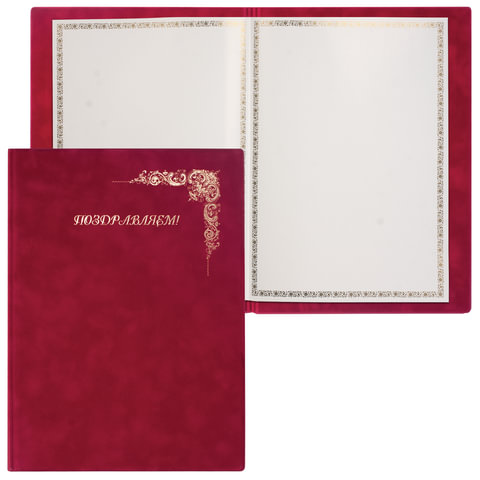 Папка адресная ПВХ под бархат "ПОЗДРАВЛЯЕМ!", формат А4, бордовая, индивидуальная упаковка, "ДПС", 2032.П-303