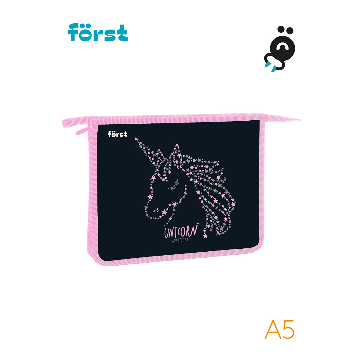 Папка для тетрадей на молнии Först Shine like a star формата А5 предназначена для хранения учебных принадлежностей. Изделие размером 240*205*40 мм имеет одно отделение. Застежка-молния сверху надежно защищает содержимое от грязи и влаги. Края папки имеют тканевую окантовку. Изготовлена из высококачественного пластика. <br/>• Формат: А5;<br/>• Материал: пластик, ткань;<br/>• Количество отделений: 1;<br/>• Тип застёжки: молния.