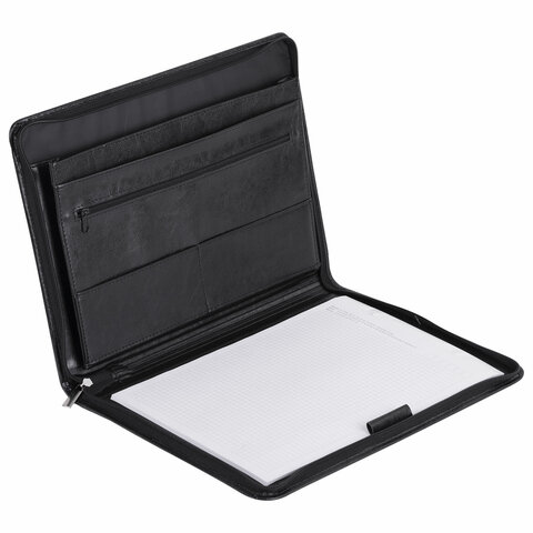 Папка из натуральной кожи на молнии, 340х250х30 мм, черная, 8-011