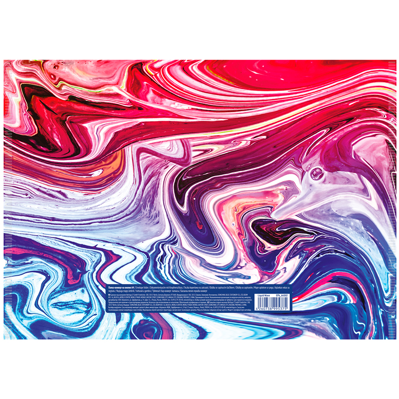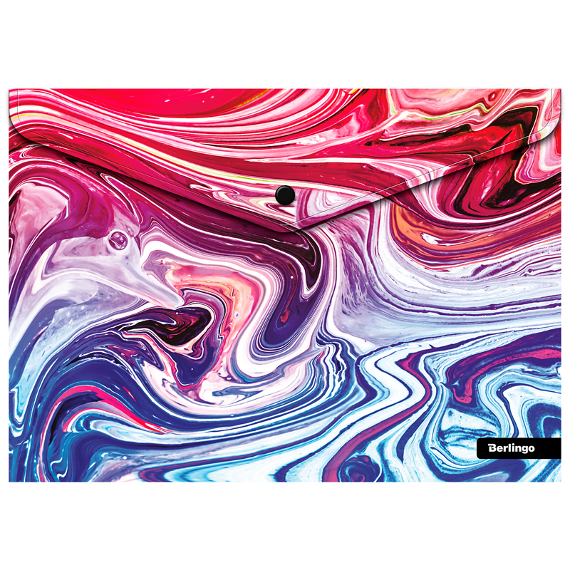 Папка-конверт на кнопке Berlingo Liquid Wave формата А4 (330*235 мм) выполнена в ярком дизайне лимитированной коллекции. Изготовлена из высококачественного полипропилена плотностью 180 мкм с матовой текстурой поверхности «апельсиновая корка», на которой не видно отпечатков пальцев и мелких царапин. Папка плотно закрывается на надёжную застёжку-кнопку, которая рассчитана на ежедневное использование и защищает документы от повреждений и загрязнений и станет отличным помощником в учёбе и работе. Вмещает до 120 листов. Упаковка в прозрачный пакет по 12 штук.<br/>• Формат: А4;<br/>• Материал: пластик;<br/>• Толщина материала: 180 мкм;<br/>• Размер: 330*235 мм;<br/>• Вместимость в листах: 120;<br/>• Способ фиксации: кнопка;<br/>• Цвет: рисунок.