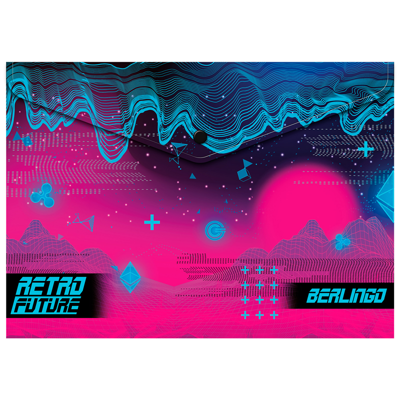 Папка-конверт на кнопке Berlingo Retro Future формата А4 (330*235 мм) выполнена в ярком дизайне лимитированной коллекции. Изготовлена из высококачественного полипропилена плотностью 180 мкм с матовой текстурой поверхности «апельсиновая корка», на которой не видно отпечатков пальцев и мелких царапин. Папка плотно закрывается на надёжную застёжку-кнопку, которая рассчитана на ежедневное использование и защищает документы от повреждений и загрязнений и станет отличным помощником в учёбе и работе. Вмещает до 120 листов. Упаковка в прозрачный пакет по 12 штук.<br/>• Формат: А4;<br/>• Материал: пластик;<br/>• Толщина материала: 180 мкм;<br/>• Размер: 330*235 мм;<br/>• Вместимость в листах: 120;<br/>• Способ фиксации: кнопка;<br/>• Цвет: рисунок.