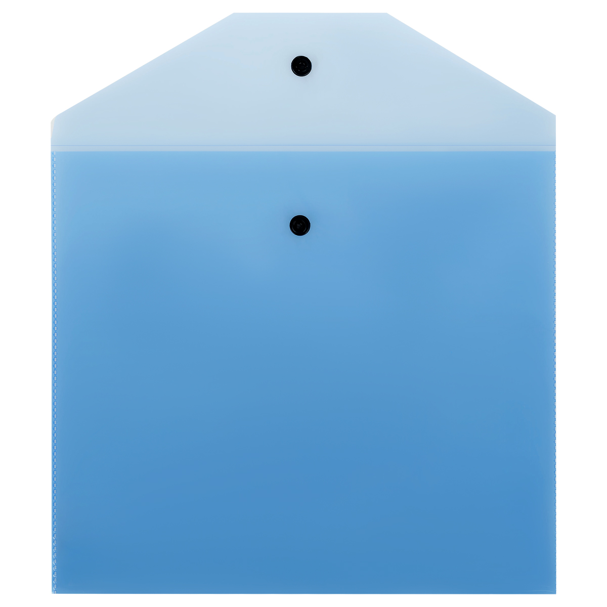 Папка-конверт на кнопке «СТАММ» формата А5+ надёжно защищает документы от влаги и пыли. Горизонтальная папка вмещает до 100 листов. Цвет папки – прозрачный синий. Папка изготовлена из качественного полипропилена плотностью 120 мкм с глянцевой текстурой. Размер папки составляет 240*215 мм. Изделие плотно закрывается клапаном с кнопкой.