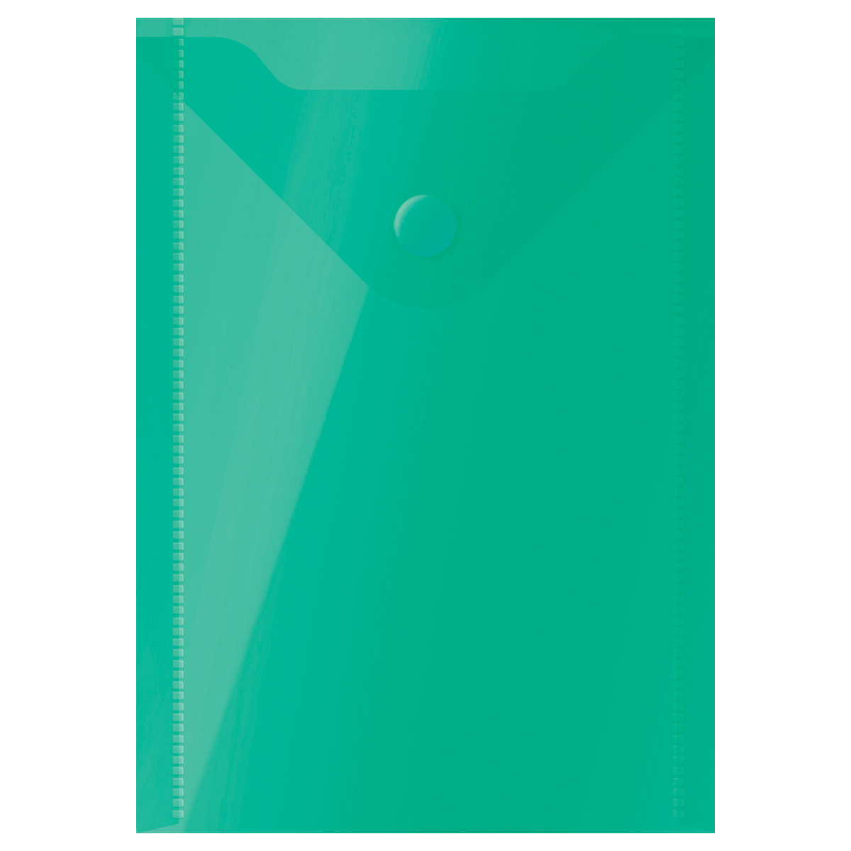 Папка-конверт на кнопке СТАММ С6, 150мкм, пластик, прозрачная, зеленая