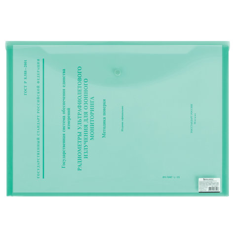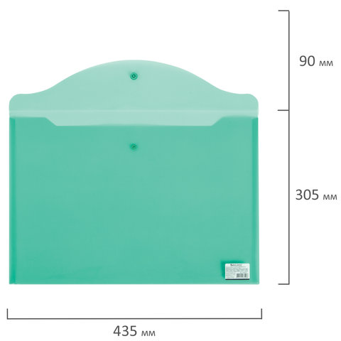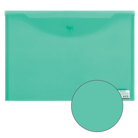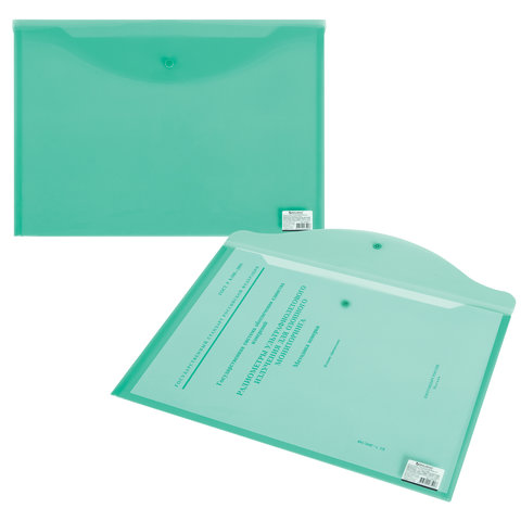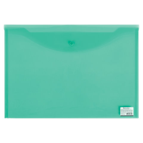 Папка-конверт с кнопкой прозрачная А4 BRAUBERG UNIVERSAL, до 100 листов, зеленая, 0,15 мм, 273074