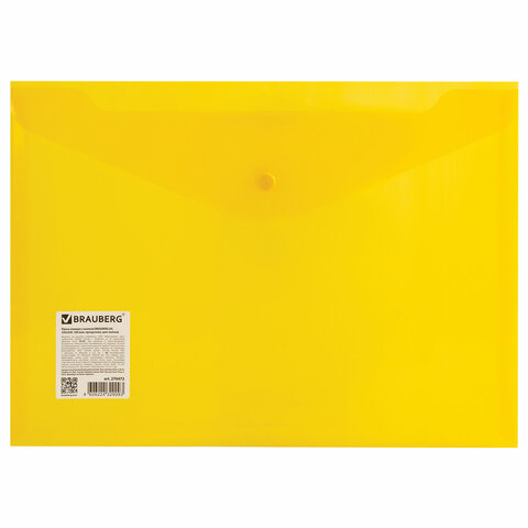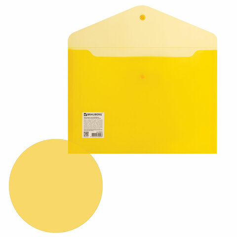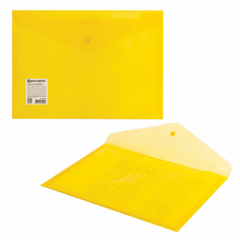 Папка-конверт с кнопкой А4 BRAUBERG UNIVERSAL, до 100 листов, вертикальная, прозрачная, 0,15 мм, 273075