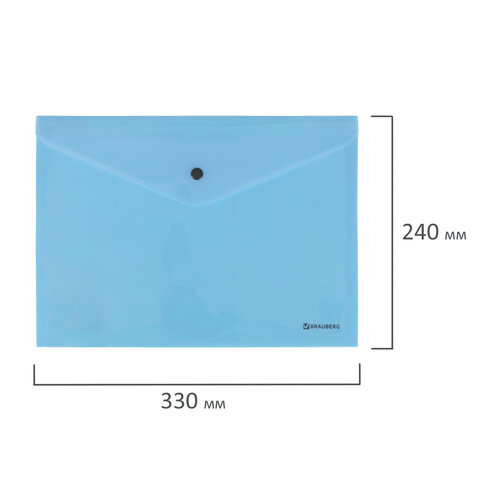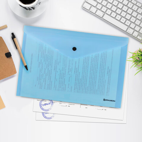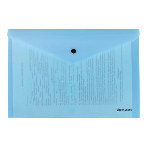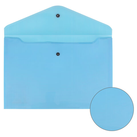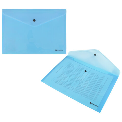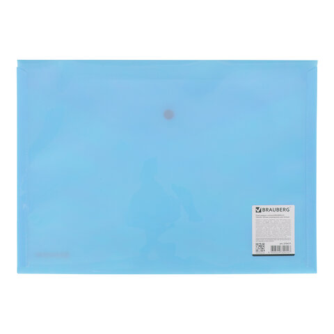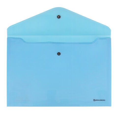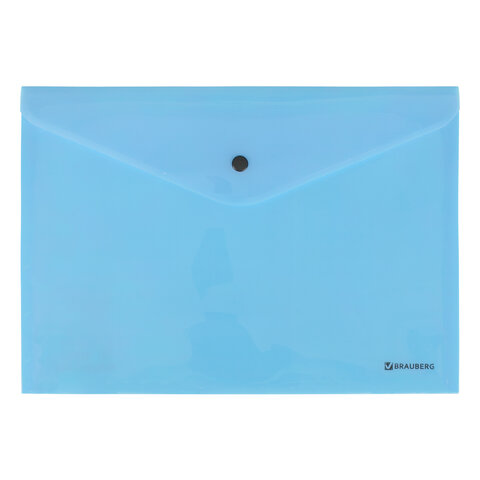 Папка-конверт с кнопкой прозрачная А4 BRAUBERG UNIVERSAL, до 100 листов, синяя, 0,15 мм, 273071