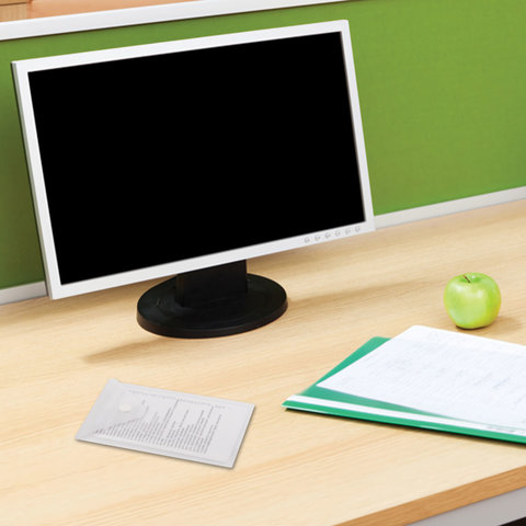 Папка-конверт с гладкой фактурой формата А6 изготовлена из плотного матового полупрозрачного пластика толщиной 180 мкм. Закрывается на защелку-кнопку, что делает удобным частое использование и обеспечивает быстрый доступ к ее содержимому. Папка способна вместить до 50 листов стандартной плотности.