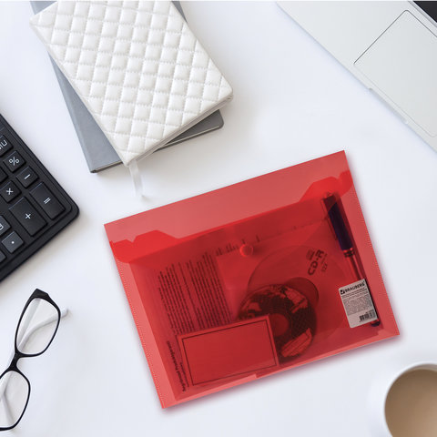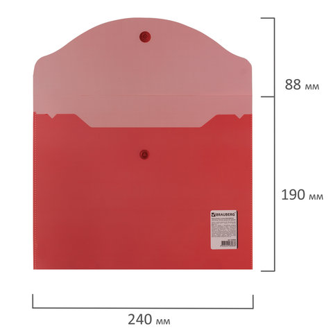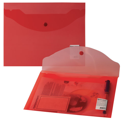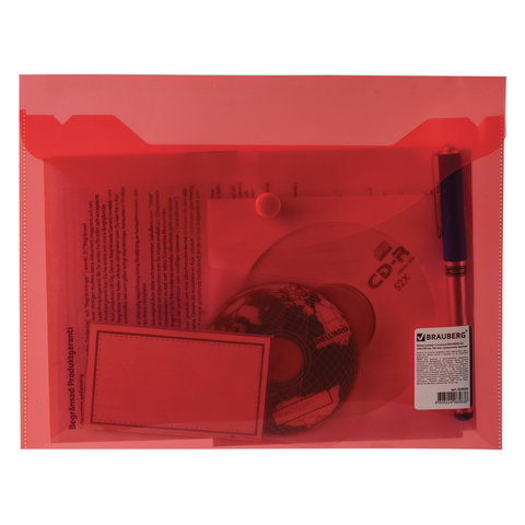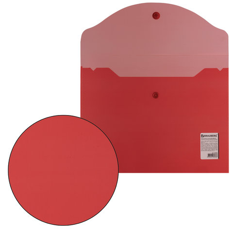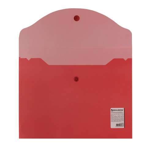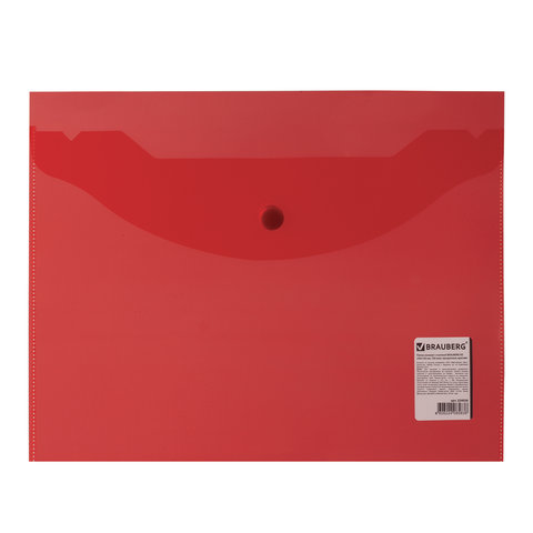 Папка-конверт с кнопкой прозрачная А4 BRAUBERG UNIVERSAL, до 100 листов, красная, 0,15 мм, 273073