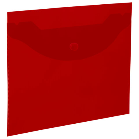 Папка-конверт с кнопкой прозрачная МАЛОГО ФОРМАТА А5, BRAUBERG UNIVERSAL, красная, 0,15 мм, 273068