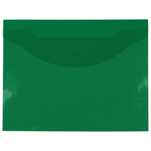 Папка-конверт с кнопкой прозрачная А4 BRAUBERG UNIVERSAL, до 100 листов, зеленая, 0,15 мм, 273074