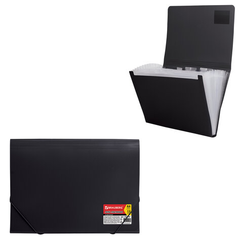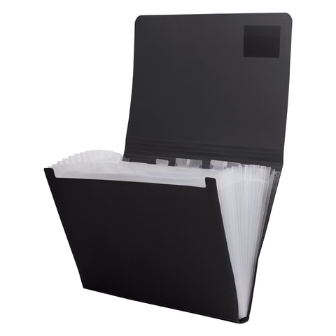 Папка формата А4 изготовлена из качественного пластика толщиной 0,5 мм с матовой фактурой и содержит 13 отделений, которые позволяют структурировать документы. Для удобства поиска нужного документа папка снабжена индексными ярлыками. Резинки, расположенные по углам, плотной закрывают папку, не позволяя содержимому выпасть и надежно защищая от влаги, пыли и прочих механических повреждений. Папка представлена в солидном черном цвете.
