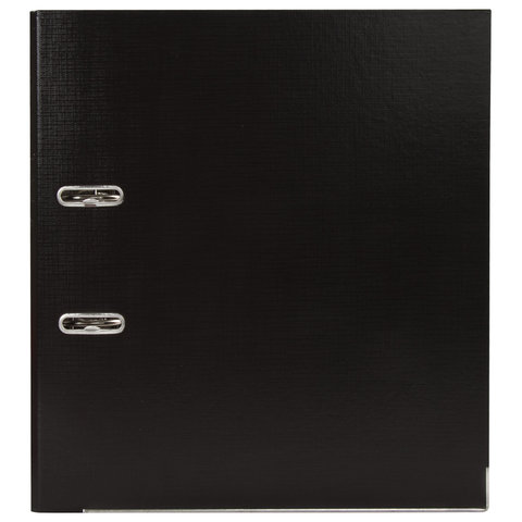 Папка-регистратор BRAUBERG "EXTRA" в формате А4 вертикальной ориентации - классический вариант хранения документов. Чем толще в папке корешок, тем больше листов можно расположить: ширина корешка в 75 мм позволяет разместить до 500 листов. Изготовлена из плотного картона, ламинированного с двух сторон цветной яркой пленкой из полипропилена, который не имеет резкого запаха, более долговечный и морозоустойчивый. Благодаря такому плотному покрытию допустима влажная уборка изделия. Нижние края папки защищены металлическим уголком, что позволяет служить в 2 раза дольше. Прорези для колец на внешней крышке позволяет оставаться папке закрытой даже при большом количестве бумаг. Классический черный цвет папки-регистратора серии "EXTRA" будет всегда органично смотреться в любом интерьере.