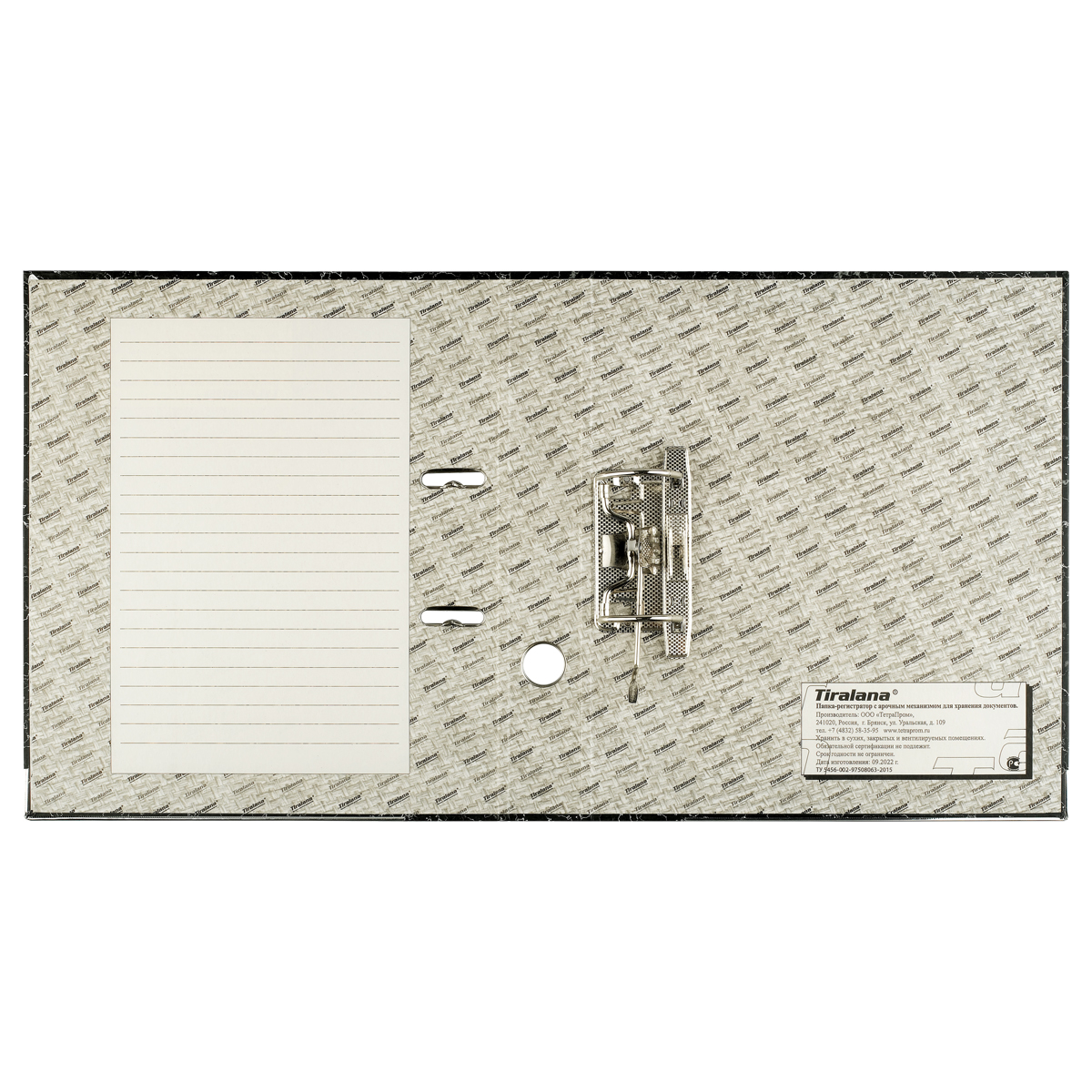 Папка-регистратор для хранения документов, металлический арочный механизм, покрытие офсетная бумага. На корешке этикетка для записей. Формат А4+. Ширина корешка 50 мм. Цвет «черный».