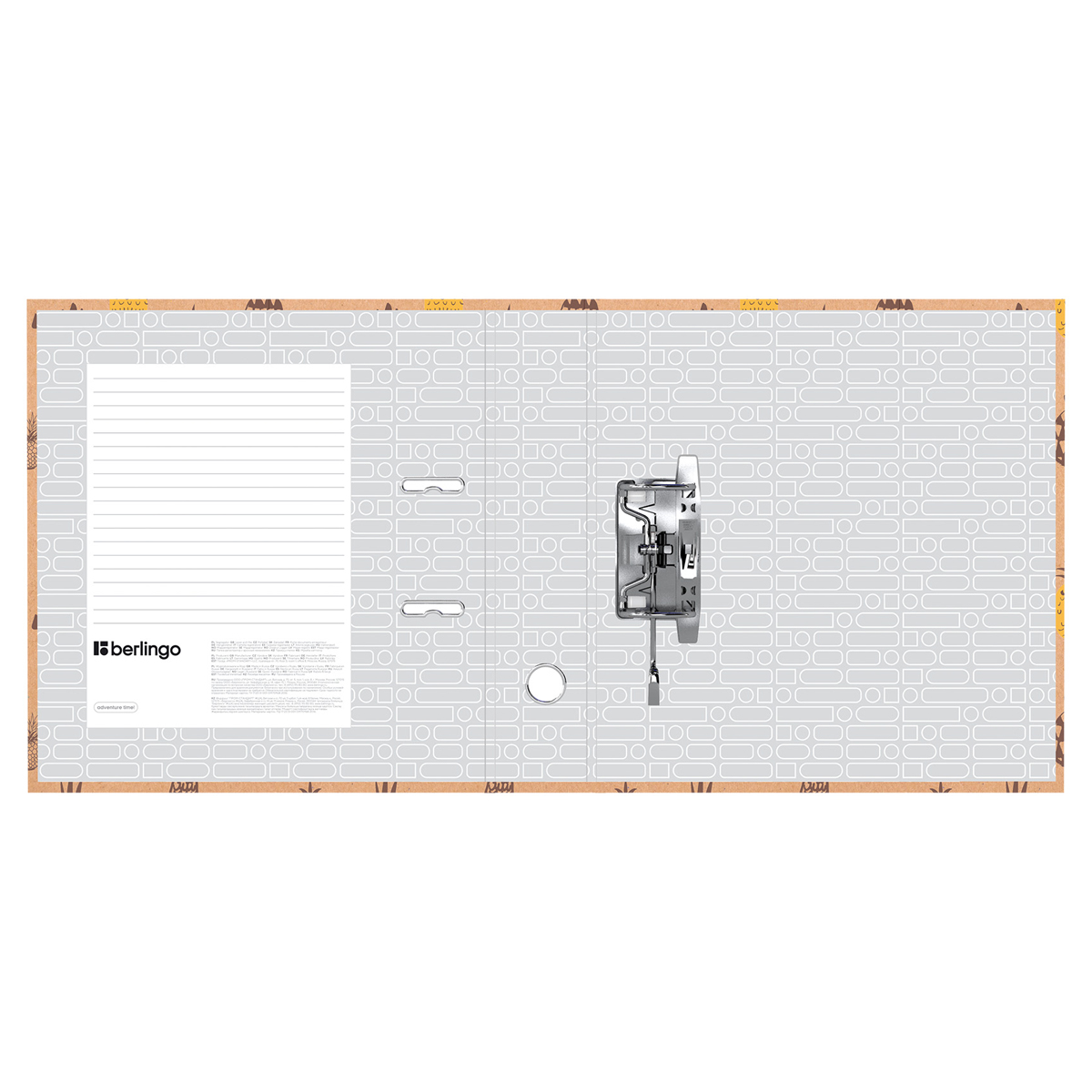 Уценка. Ограничений в дальнейшем использовании нет. Повреждения товара нет.<br/>Причина уценки: белая этикетка на упаковке ед.товара<br/><br/><br/>Стильная папка-регистратор Berlingo серии Pineapple формата А4 с арочным механизмом эффективно экономит офисное пространство и идеальна для создания архива. Ширина корешка составляет 70 мм. Папка вмещает до 550 листов. Забавный дизайн: обложка папки с рисунком ананасов. Изготовлена из жёсткого износостойкого картона с односторонним покрытием из крафт-бумаги. Внутреннее покрытие - бумага. Папка имеет арочный механизм из качественного металла. Конструкция разработана с учётом всех особенностей эксплуатации. Эргономичное отверстие в корешке помогает быстро снять папку с полки. На внутренней стороне обложки есть поле для записей. Ориентация папки - вертикальная. Размер папки – 320*290*70 мм.<br/>• Вместимость, в листах: 550 ;<br/>• Формат: А4;<br/>• Цвет: рисунок;<br/>• Ширина корешка: 70 мм<br/><br/>Уцененный товар подлежит возврату или обмену в случае обнаружения недостатков, о которых покупатель не был проинформирован перед покупкой