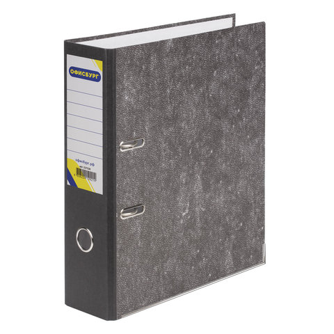 Папка-регистратор ОФИСМАГ, фактура стандарт, с мраморным покрытием, 75 мм, черный корешок, 222097
