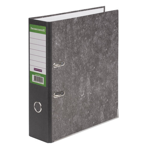 Папка-регистратор БИЗНЕСМЕНЮ, усиленный корешок, мраморное покрытие, 80 мм, с уголком, черная, 227529