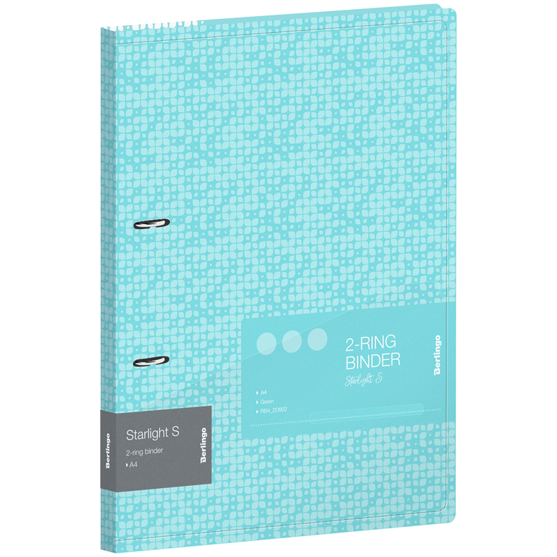 Папка пластиковая на 2 D-кольцах Berlingo "Starlight S" формата А4 зеленого цвета с рисунком. Полупрозрачная обложка. Специальная D форма колец помогает удобно и ровно хранить документы, которые могут быть выровнены по левому краю, благодаря боковой вертикальной стенке кольца. Диаметр колец 20мм. Специальные формовые отверстия в обложке служат для надежного защелкивания папки в сложенном виде, предотвращают случайное открытие обложки и замятие документов внутри при хранении и транспортировке. Изготовлена из высококачественного полипропилена с матовой текстурой поверхности "песок", на которой не видно отпечатков пальцев и мелких царапин. Предназначена для хранения документов. Толщина обложки 600мкм. На внутренней стороне обложки оснащена плотным прозрачным карманом для удобного хранения мелочей: ручки, заметок, визиток, дисков, флешек и др. Папка вмещает до 150 листов. Упакована в индивидуальный прозрачный пакет по форме.