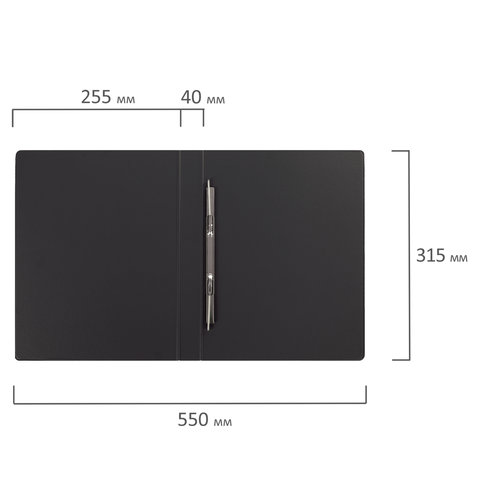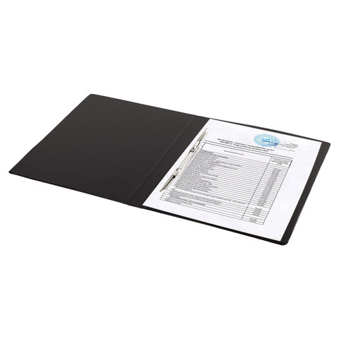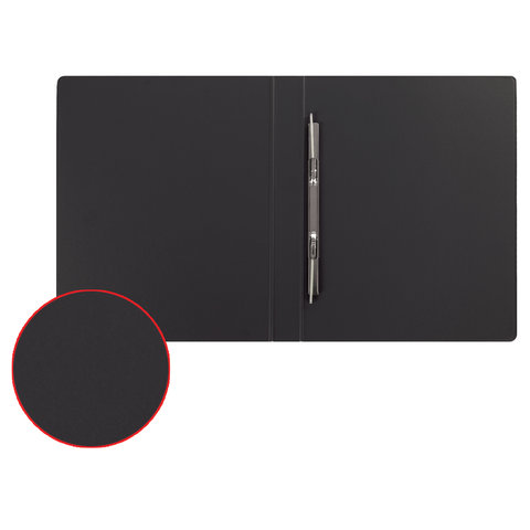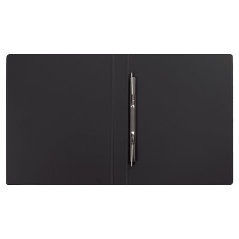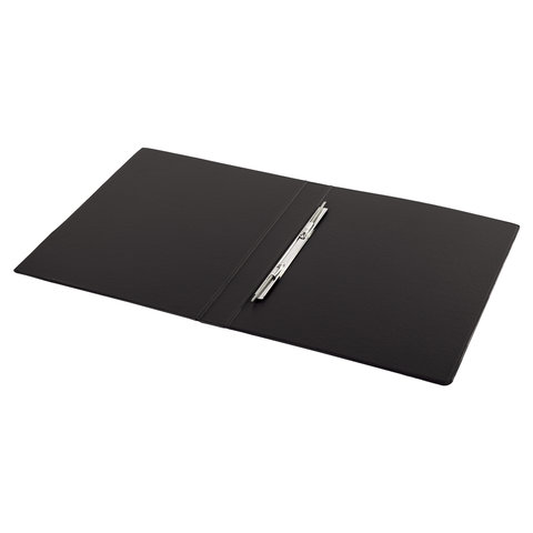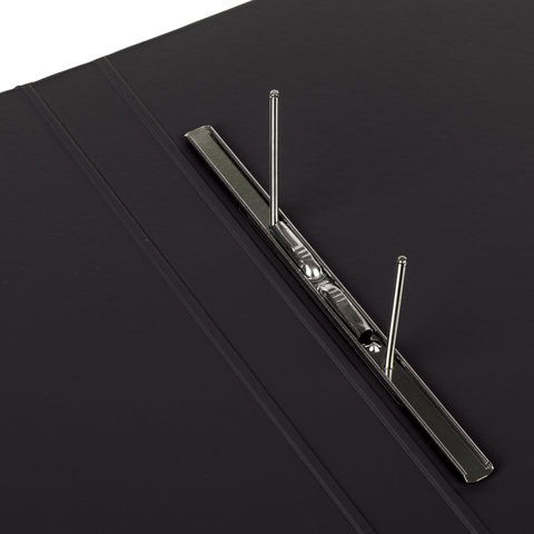 Изготовлена из высококачественного картона с ПВХ покрытием черного цвета. Обеспечивает хранение до 290 листов формата А4. Металлический скоросшиватель с пружинным механизмом обеспечит надежную фиксацию документов. Для идентификации папки имеется сменный бумажный корешок.