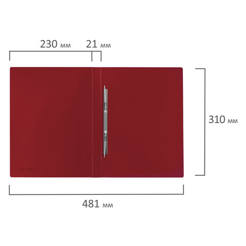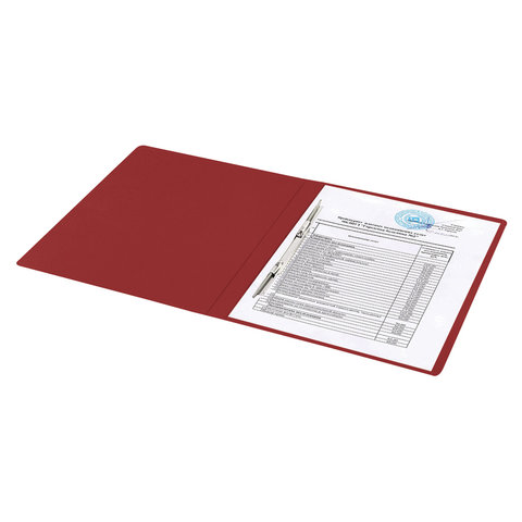 Изготовлена из высококачественного пластика красного цвета толщиной 0,6 мм с фактурой "песок". Обеспечивает хранение до 100 листов формата А4. Металлический скоросшиватель с пружинным механизмом обеспечит надежную фиксацию документов. Для идентификации папки имеется бумажный корешок. Поставляется в индивидуальной упаковке.