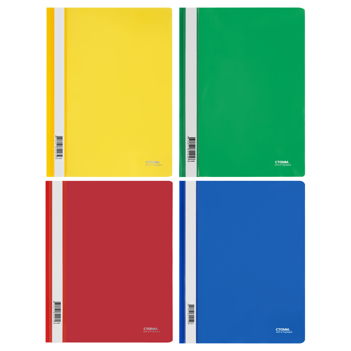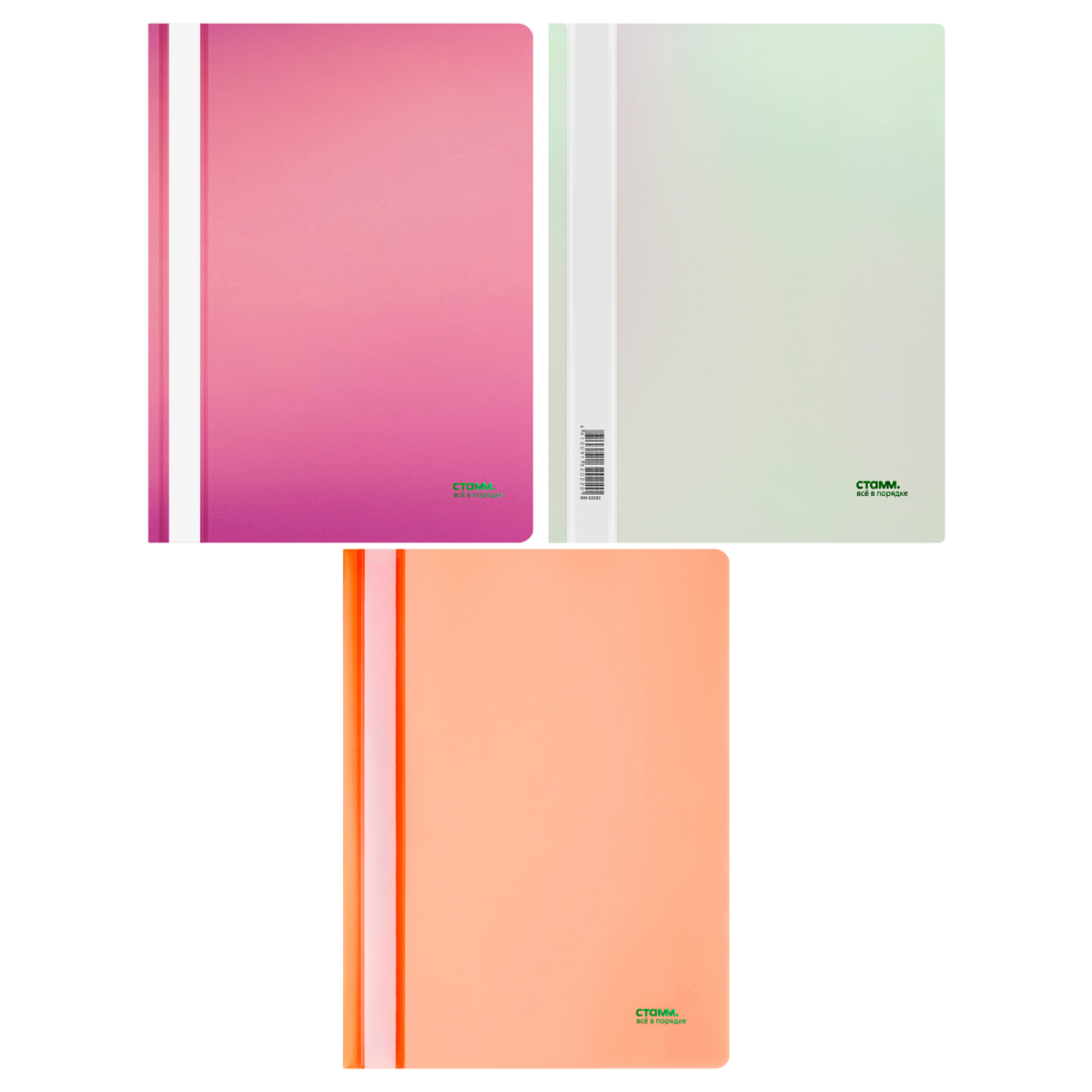 Папка-скоросшиватель пластик. СТАММ А4, 180мкм, ассорти с прозр. Верхом