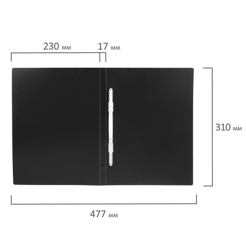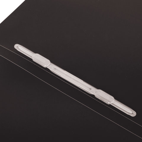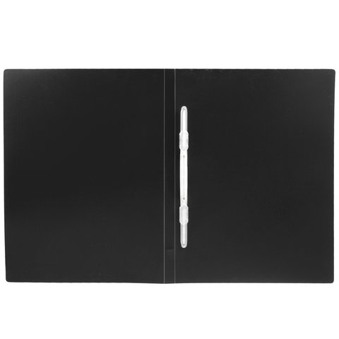 Изготовлена из высококачественного пластика черного цвета толщиной 0,5 мм с фактурой "песок". Обеспечивает хранение до 100 листов формата А4. Пластиковый скоросшиватель обеспечит надежную фиксацию документов. Для идентификации имеется бумажный корешок.