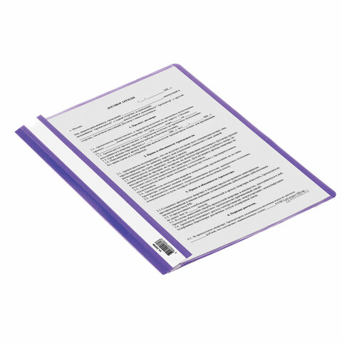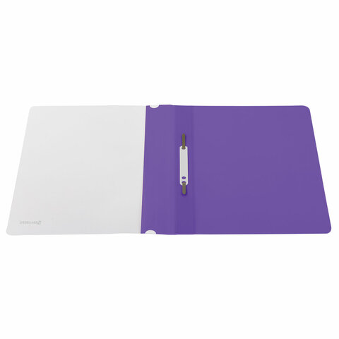 Фиксирует до 100 листов формата А4. Толщина пластика верхнего листа составляет 130 мкм, а нижнего - 180 мкм. Предельно простой механизм подшивки: металлические усики и пластиковая планка для надежной фиксации документов. Скоросшиватель изготовлен из качественного полипропилена. Прозрачный верхний лист позволяет определить содержимое, не открывая скоросшиватель, который к тому же снабжен сменным пластиковым корешком, что дает возможность структурировать информацию. Благодаря фактуре "песок" и яркому фиолетовому цвету обложки папка никогда не затеряется на полке.
