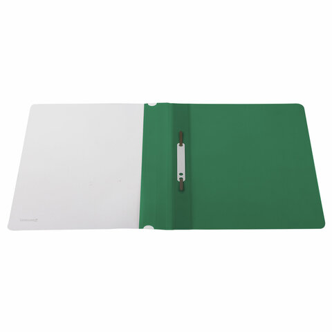 Фиксирует до 100 листов формата А4. Толщина пластика верхнего листа составляет 130 мкм, а нижнего - 180 мкм. Предельно простой механизм подшивки: металлические усики и пластиковая планка для надежной фиксации документов. Скоросшиватель изготовлен из качественного полипропилена. Прозрачный верхний лист позволяет определить содержимое, не открывая скоросшиватель, который к тому же снабжен сменным пластиковым корешком, что дает возможность структурировать информацию. Благодаря фактуре "песок" и яркому зеленому цвету обложки папка никогда не затеряется на полке.