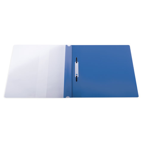 Фиксирует до 100 листов формата А4. Толщина пластика верхнего листа составляет 140 мкм, а нижнего - 180 мкм. Предельно простой механизм подшивки: металлические усики и пластиковая планка для надежной фиксации документов. Мультиперфорация по краю обложки позволяет подшивать изделие в папки с любым механизмом. Скоросшиватель изготовлен из качественного полипропилена. Прозрачный верхний лист позволяет определить содержимое, не открывая скоросшиватель, который к тому же снабжен сменным пластиковым корешком, что дает возможность структурировать информацию. Благодаря фактуре "песок" и насыщенному синему цвету обложки папка никогда не затеряется на полке.