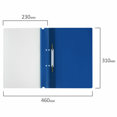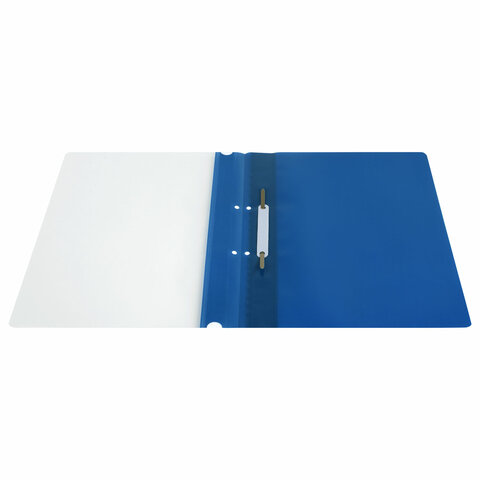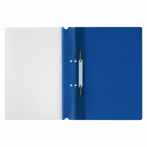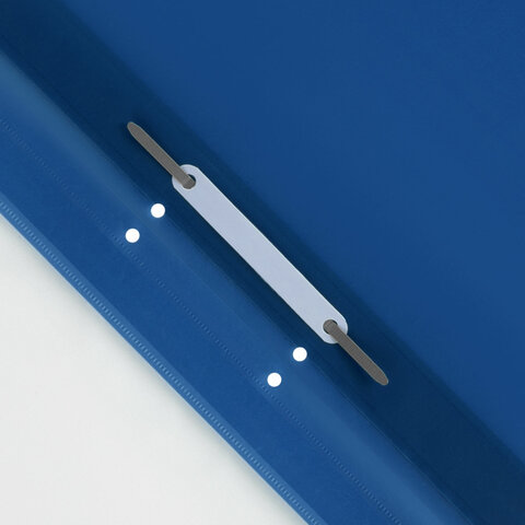 Фиксирует до 100 листов формата А4. Толщина пластика верхнего листа составляет 100 мкм, а нижнего - 120 мкм. Предельно простой механизм подшивки: металлические усики и пластиковая планка для надежной фиксации документов. Скоросшиватель изготовлен из качественного полипропилена. Прозрачный верхний лист позволяет определить содержимое, не открывая скоросшиватель, который к тому же снабжен сменным пластиковым корешком, что дает возможность структурировать информацию. Кроме того, корешок скоросшивателя снабжен перфорацией, что позволяет подшивать его в папки с любым механизмом. Благодаря насыщенному синему цвету обложки папка никогда не затеряется на полке.