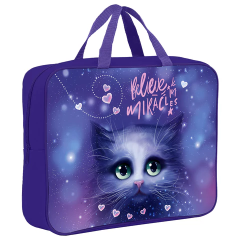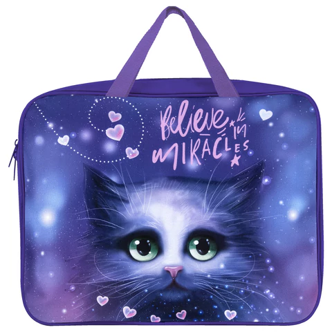 Папка текстильная с ручками 1 отделение, А4 Berlingo "Lucky cats", 350*265*75мм, текстиль, на молнии