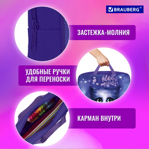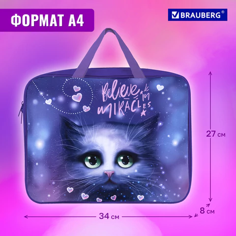 Папка для тетрадей BRAUBERG формата А4 с ручками предназначена для транспортировки и хранения канцелярских принадлежностей и учебных пособий. Папка защитит содержимое от замятий и повреждений. Идеально подходит для внешкольных занятий.