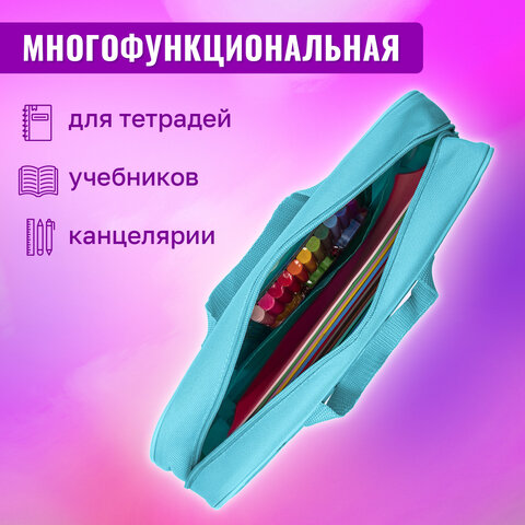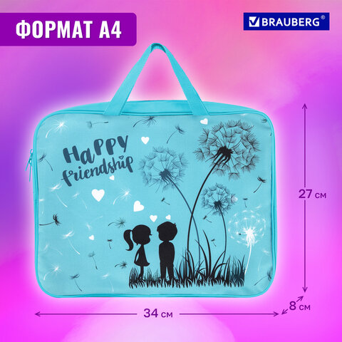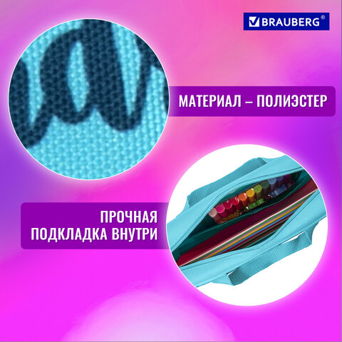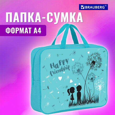 Папка для тетрадей BRAUBERG формата А4 с ручками для переноски. Изготовлена из прочного полиэстера с яркой печатью. Одно отделение. Застегивается на молнию. Папка держит форму за счет прорезиненного канта по краям.