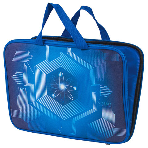 Папка-сумка для тетрадей BRAUBERG "Atom" формата А4 с ручками для переноски. Изготовлена из плотного полиэстера с подкладкой внутри. Одно отделение. Застегивается на молнию. Папка держит форму за счет прорезиненного канта по краям. Яркая цветная печать.