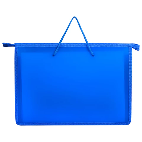 Папка-сумка с ручками подходит для бумаг, документов и учебных пособий формата А4. Изготовлена из прочного износостойкого пластика с тканевой окантовкой по краям.