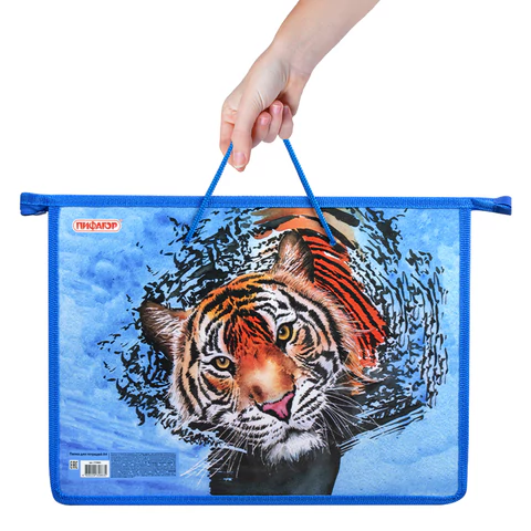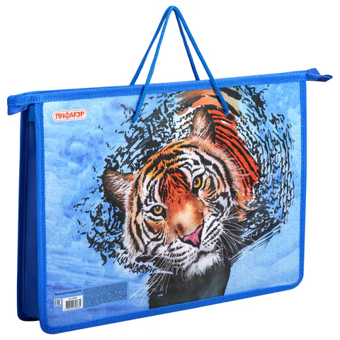 Папка на молнии с ручками ПИФАГОР А4 "Wild cat" защитит учебные пособия и тетради от замятий и повреждений.