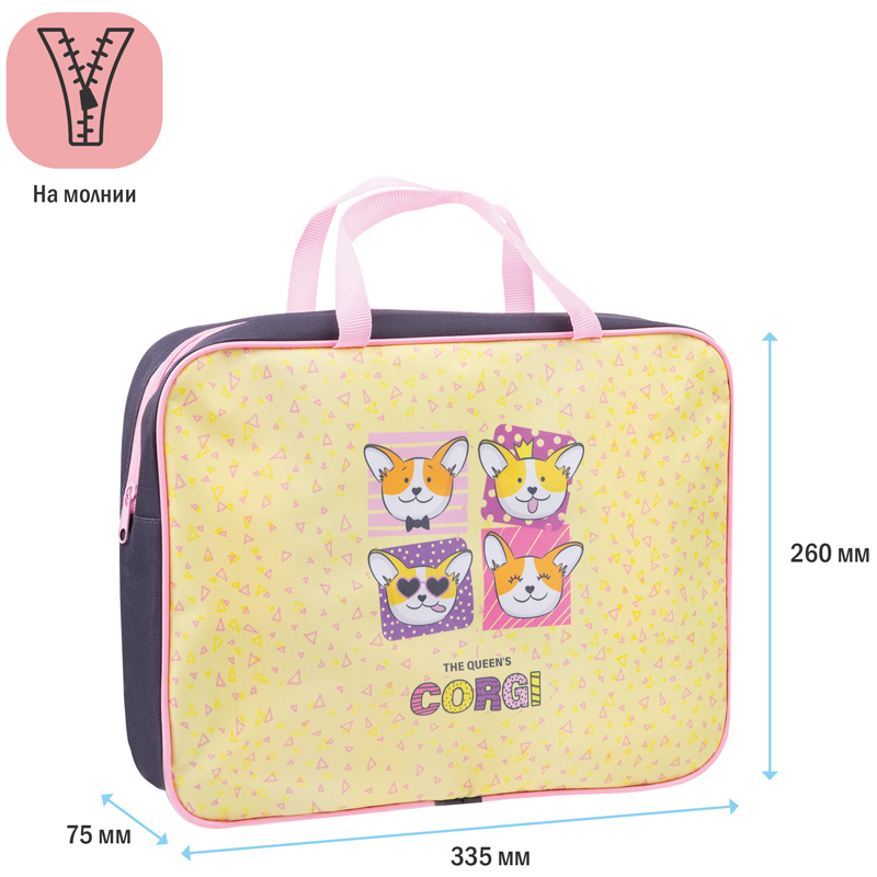 Папка с ручками на молнии для тетрадей ArtSpace Corgi формата А4 с рисунком корги станет стильным помощником в учёбе и работе. Изделие предназначено для хранения документов. Папка изготовлена из полиэстера. Ширина папки: 70 мм. Товар имеет одно отделение.<br/>• Формат: А4;<br/>• Ширина: 70 мм;<br/>• Материал: полиэстер;<br/>• Количество отделений: 1;<br/>• Вид ручек: тесьма;<br/>• Тип застёжки: молния;<br/>• Цвет: рисунок.