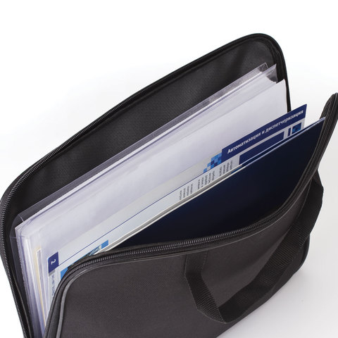 Практичная папка на молнии с прочными ручками из тесьмы, удобна при транспортировке документов формата А4.