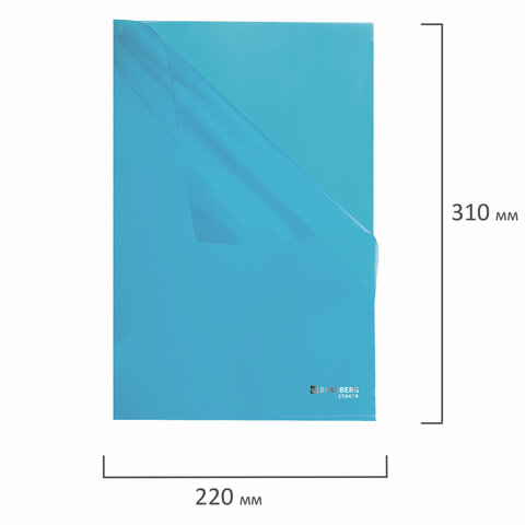 Папка-уголок жесткая прозрачная А4 BRAUBERG UNIVERSAL, синяя, 0,15 мм, 273050
