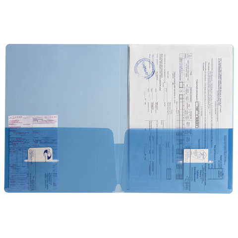 Папка-уголок жесткая прозрачная А4 BRAUBERG UNIVERSAL, синяя, 0,15 мм, 273050
