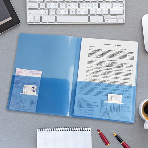 Папка формата А4 выполнена из высококачественного полипропилена плотностью 180 мкм. Она предотвращает смятие, загрязнение или намокание бумаг, а благодаря внутреннему карману позволяет хранить в 2 раза больше бумаг. Непрозрачный материал способен скрыть содержимое от посторонних глаз. Данная папка заметно выделяется среди других благодаря насыщенному синему цвету.