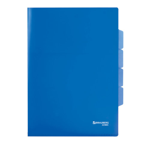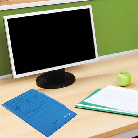 Папка формата А4 выполнена из высококачественного полипропилена плотностью 150 мкм. Она предотвращает смятие, загрязнение или намокание бумаг. Непрозрачный материал способен скрыть содержимое от посторонних глаз. Имеет 3 отделения, разделенных ярлычками. Данная папка заметно выделяется среди других благодаря насыщенному синему цвету.
