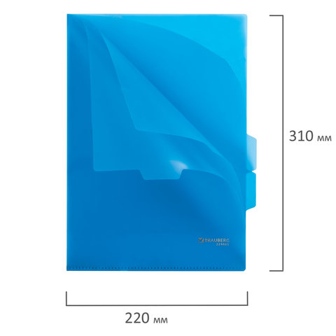 Папка-уголок жесткая прозрачная А4 BRAUBERG UNIVERSAL, синяя, 0,15 мм, 273050