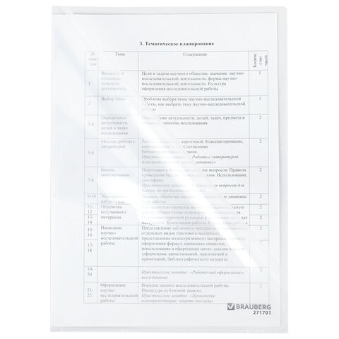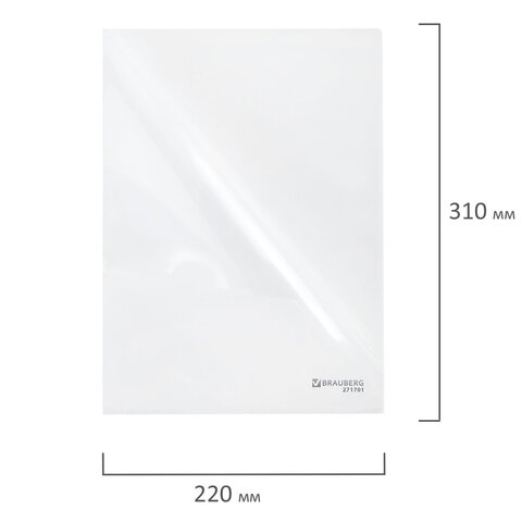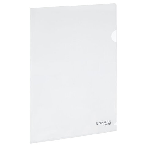 Папка-уголок жесткая А4 BRAUBERG UNIVERSAL, прозрачная, 0,18 мм, 273054