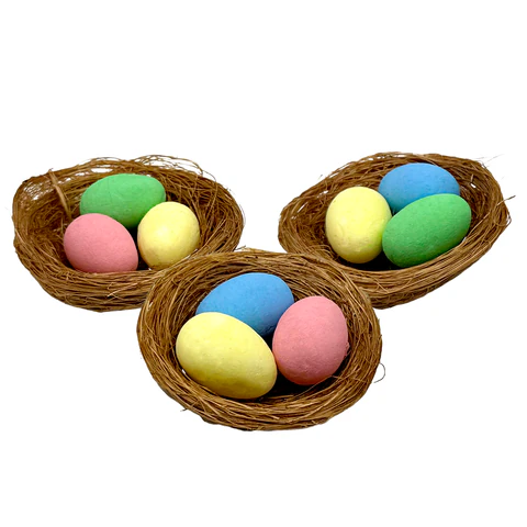 Комплект гнезд их 3 шт. диаметром 7 см каждое с яичками внутри — идеальный выбор для тех, кто хочет создать тёплую, уютную атмосферу праздника, наполненную символами обновления и заботы. Идеально подходит для оформления праздничного стола, интерьера, подарка или выпечки.