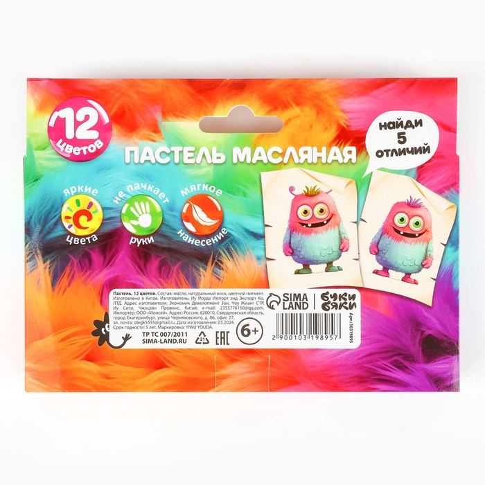 Масляная пастель 12 цветов мягкая в картонной коробке, европодвес