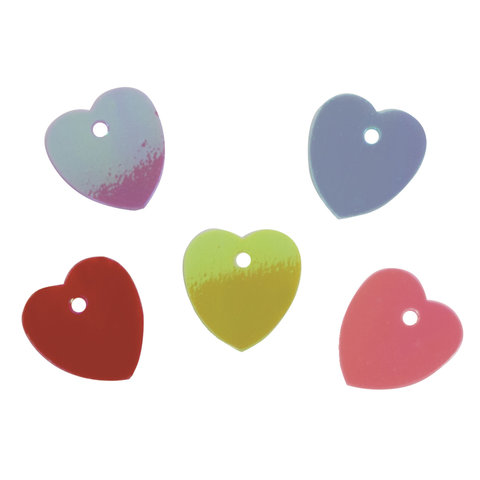 Изготовлены из высококачественного пластика. В наборе представлены 5 цветов в форме сердец. Оснащены отверстием для нити в центре. Предназначены для детей от 3 лет. Диаметр - 10 мм. Вес - 20 г. Поставляются в пакете с европодвесом.