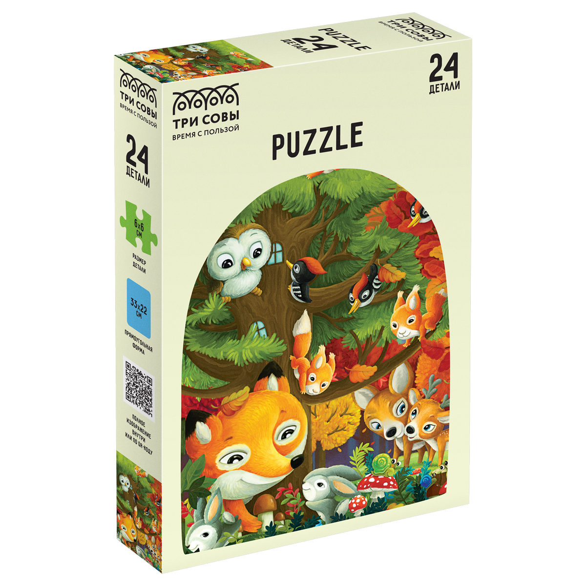 Пазл МАКСИ «ТРИ СОВЫ» «Лесная компания» из 24 элементов станет отличным способом весело провести вечер. Большой размер деталей будет удобен даже для самых маленьких ручек. Прямоугольная картинка имеет вертикальную ориентацию, в собранном виде размер составляет 33*22 см. Тематика – животные.<br/>Пазлы «ТРИ СОВЫ» – это большой выбор иллюстраций, яркие и четкие цвета и высокий уровень полиграфии. Пазлы изготовлены из плотного специализированного картона, который обеспечивает высокую сцепку деталей. В комплектацию головоломки входит вкладыш с полным изображением пазла. Процесс сборки будет увлекателен для всей семьи и поможет провести время интересно и с пользой – занятие способствует развитию образного и логического мышления, памяти и мелкой моторики. Пазлы упакованы в прочную красивую коробку и станут отличным подарком! Изготовлены в России.<br/>• Количество элементов: 24;<br/>• Размер в собранном виде: 33*22 см;<br/>• Ориентация: вертикальная.